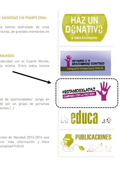 Podéis acceder mediante el banner o tecleando en vuestro navegador la siguiente dirección: http://www.itakaescolapios.org/campanas/2013-2014-semana-de-la-paz/