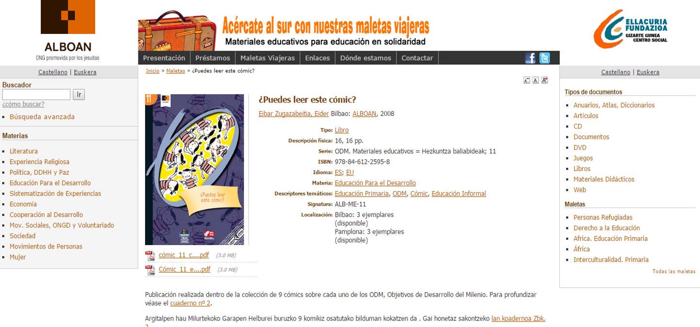 Un interesante material educativo de Alboan, ONG promovida por los jesuitas, sobre los objetivos del milenio: http://centroderecursos.alboan.org/ebooks/0000/0279/c%C3%B3mic_11_castellano.pdf