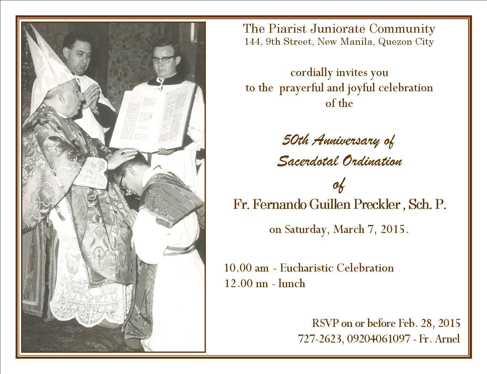 Y también ayer eran varios escolapios que cumplían sus 50 años desde la ordenación sacerdotal. Enhorabuena por esta perseverancia y fidelidad que nos deja entrever lo bueno que es Dios para con todos. Son también grandes escolapios por esta dedicación y por sus aportaciones particulares bien valiosas. Felicidades a Miguel Ángel Asiain, Giuseppe Buonsanti, Felipe Colombo, Fernando Guillén, Jesús Mª Lecea, Romeo Piroli, Giuseppe Romanó y Giuseppe Venturi.