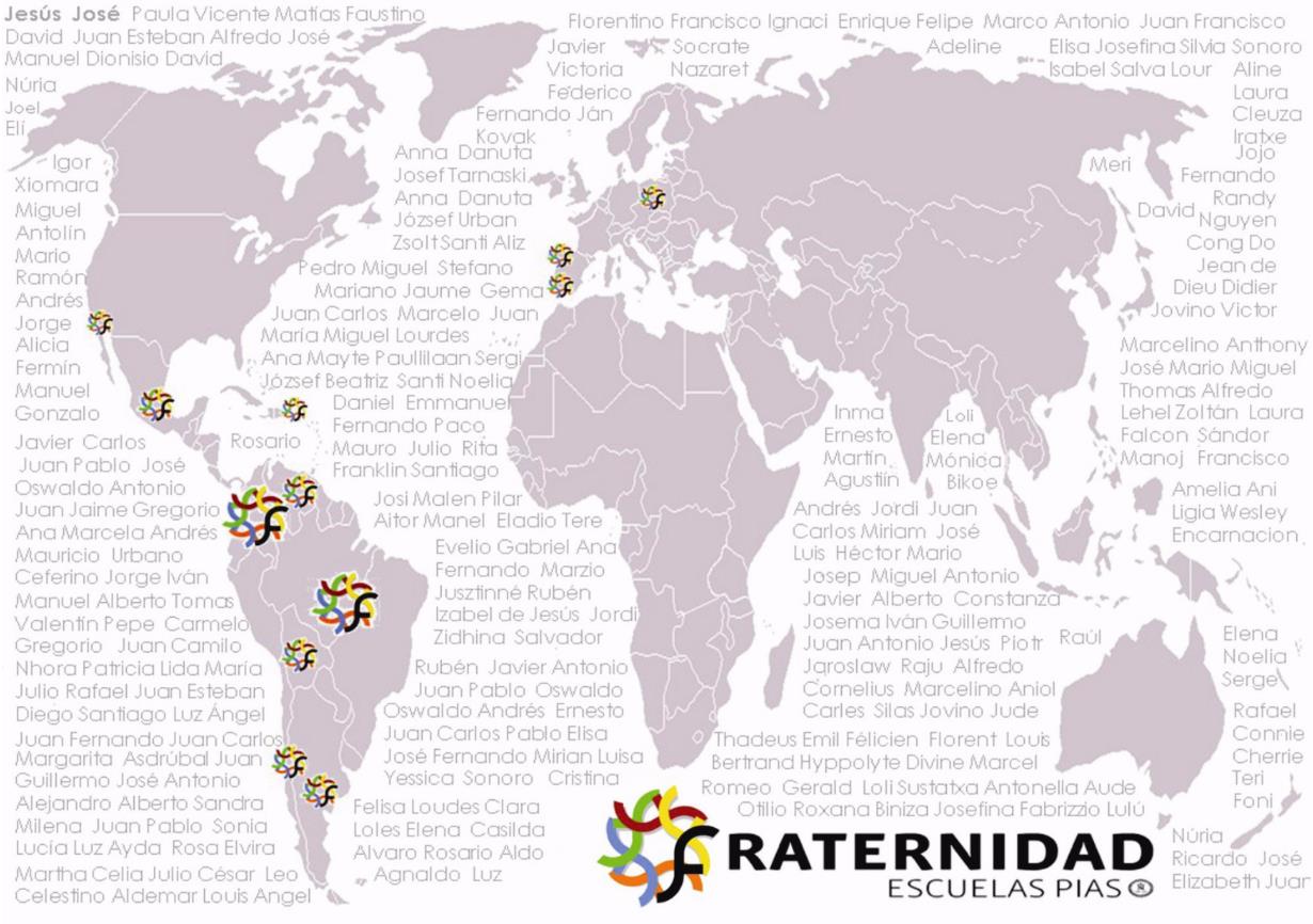 Desde Nazaret nos llega esta preciosa imagen situando las actuales Fraternidades escolapias en sus correspondientes países en medio de un «océano» de los nombres de las personas que las componen.