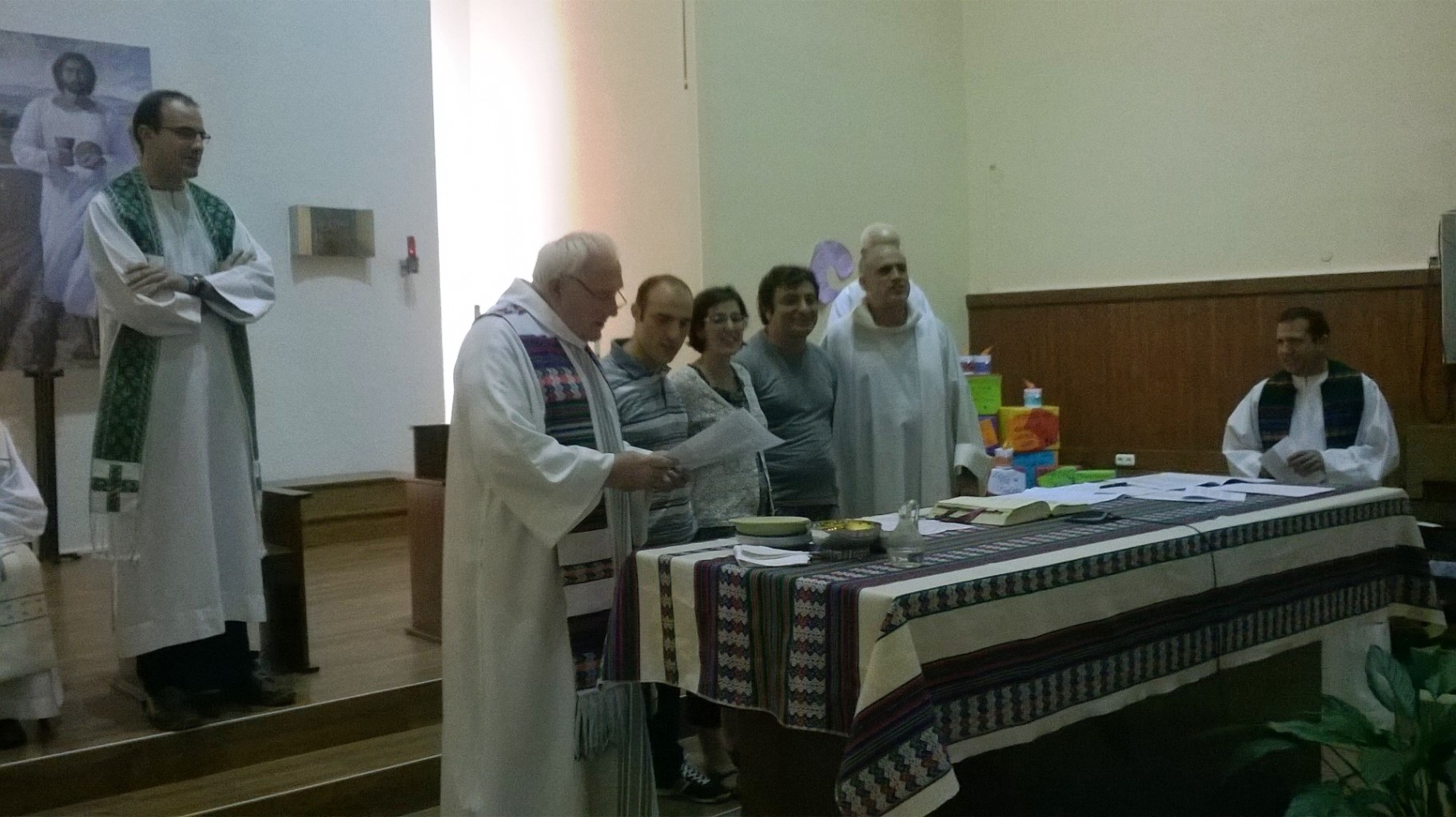 Numerosos escolapios, religiosos y laicos, venidos de distintos lugares de la Provincia, miembros de la Fraternidad y de los grupos de Lurberri, participantes habituales de esta misa, amigos, se hicieron presentes para acompañar este momento tan significativo para ellos tres, para los 16 escolapios laicos actuales (con otros seis en proceso de discernimiento) y también para todas las Escuelas Pías y su misión.