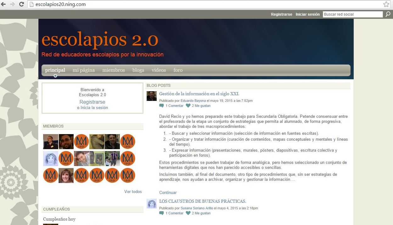 Siempre es conveniente estar en red con educadores que nos ayuden a seguir avanzando en nuestra misión escolapia. Aquí tenemos una red iniciada en las Escuelas Pías de Emaús donde ya participan muchos educadores del entorno escolapio de diversos países: http://escolapios20.ning.com/