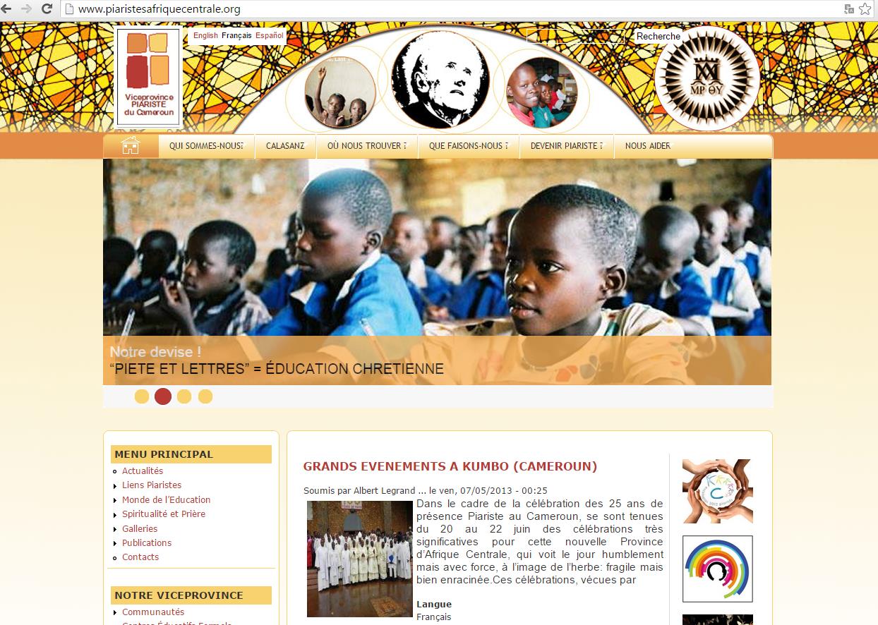 La web de las Escuelas Pías de África central nos ofrece información de esta importante parcela de nuestra geografía escolapia. La encontramos en http://www.piaristesafriquecentrale.org/