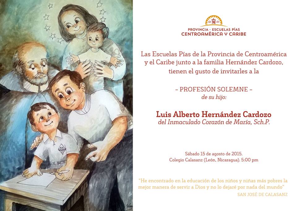PRÓXIMA PROFESIÓN SOLEMNE EN NICARAGUA 13/08/2015 Enhorabuena a Luis Alberto Hernández que dará este paso de compromiso con Jesús, al estilo escolapio, este 15 de agosto.
