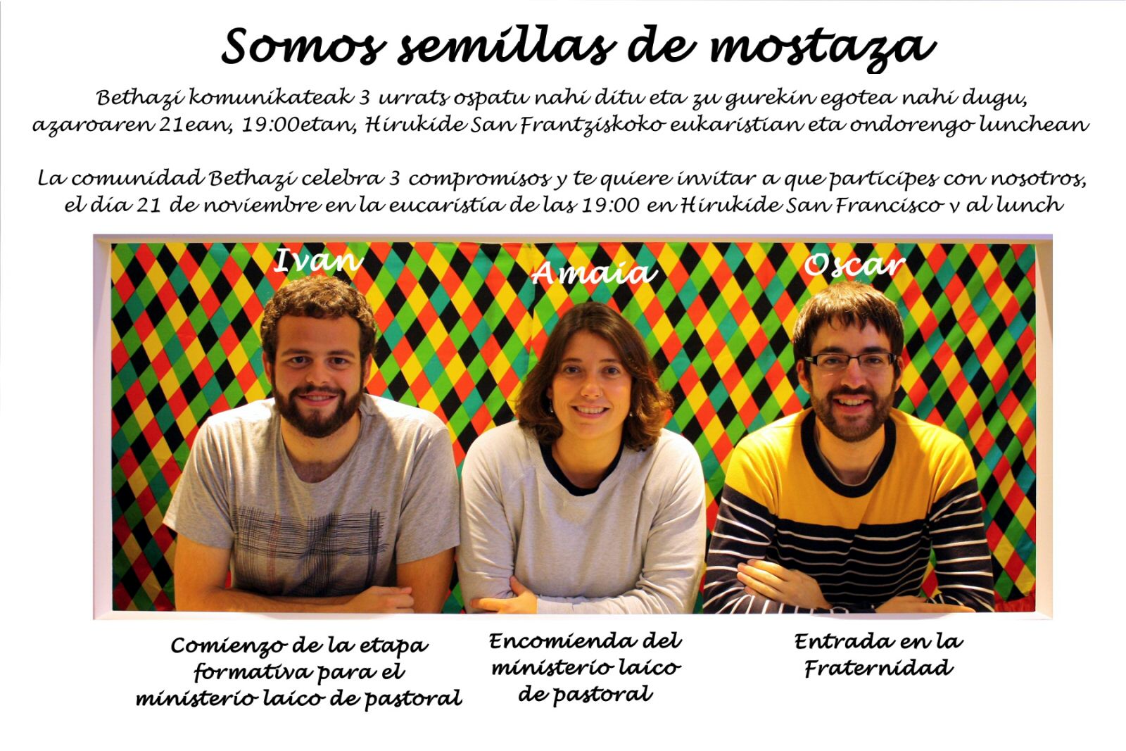 Este próximo sábado, día 21, a las 7 de la tarde tenemos una fiesta muy especial la Provincia y la Fraternidad de Emaús: la encomienda del ministerio laico de pastoral a Amaya, el comienzo de su etapa formativa para Iván y la acogida en la Fraternidad de Óscar.