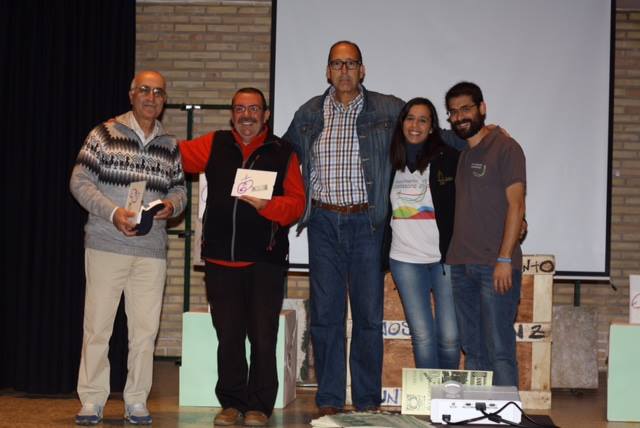nota.- en la foto aparecen, desde la izquierda, tres de los fundadores del Movimiento Calasanz en Montequinto (Daniel, Juanjo y Roberto) y a continuación dos de los responsables actuales (Regina y Manu)