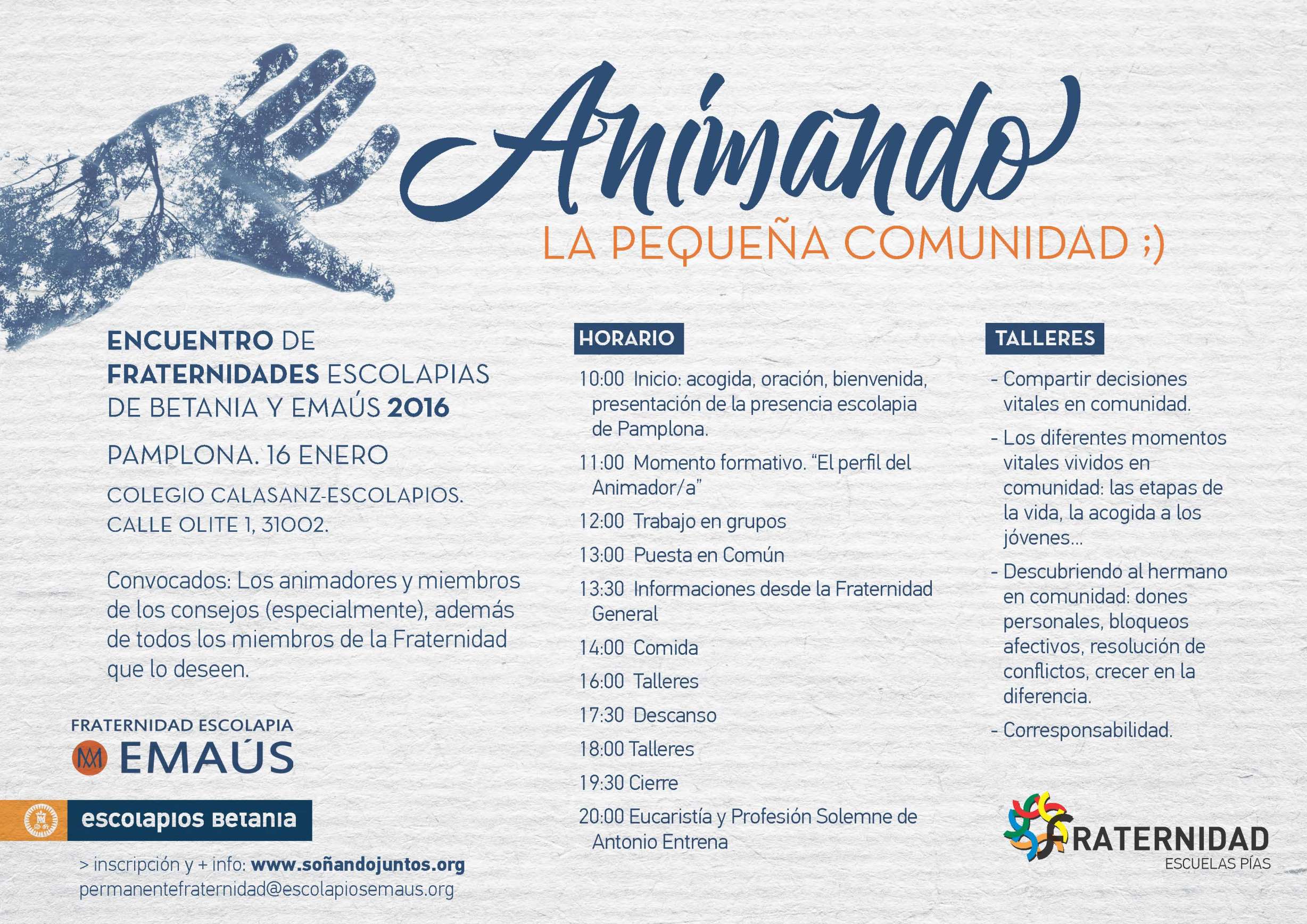 El 16 de enero se celebra en Pamplona el Encuentro anual de las Fraternidades de Emaús y Betania, dirigido especialmente a quienes tienen responsabilidad de las pequeñas comunidades que configuran la Fraternidad.