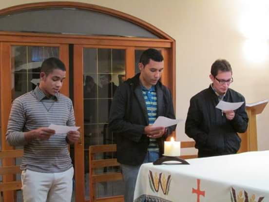Iniciación del noviciado de Frank Manuel de la Provincia de Centroamérica y El Caribe, Ivomar de la Viceprovincia de Brasil y Bolivia, y René Cabrera de la Provincia Nazaret.