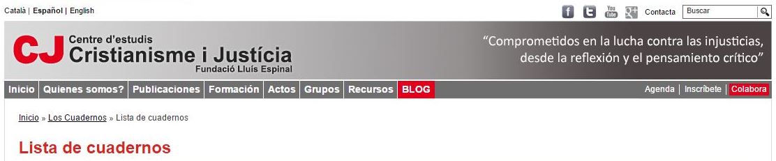El Centro de estudios Cristianisme i Justícia de la Fundació Lluis Espinal ofrece estos valiosos cuadernillos de formación, sencillos y bien profundos, para la formación social. Son un instrumentos imprescindible para una buena formación cristiana hoy.