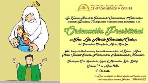 El 7 de mayo será ordenado sacerdote Luis Alberto Henrández Cardoso, escolapio venezolano de la Provincia de Centroamérica y Caribe.