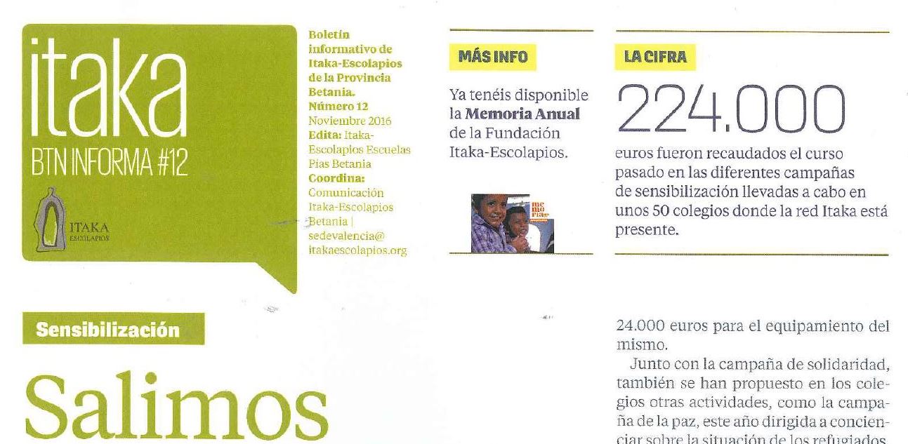 Nueva publicación de Itaka – Escolapios informando de las novedades en Betania: proyectos, actividades… que podemos encontrar en http://www.escolapios21.org/wp-content/uploads/2016/12/161100-Itaka-Betania-informa.pdf