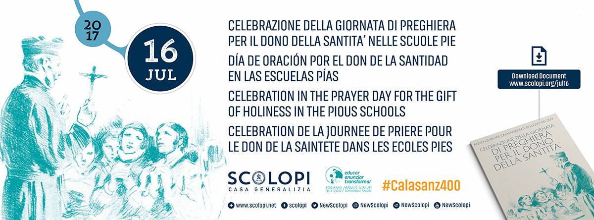 El 16 de julio el conjunto de la Orden celebra el Día de oración por el don de la Santidad en las Escuelas Pías. En este Año Jubilar, ponemos a vuestra disposición un sencillo material que puedes descargar aquí. En él encontrarás una breve introducción histórica así como una propuesta de celebración: