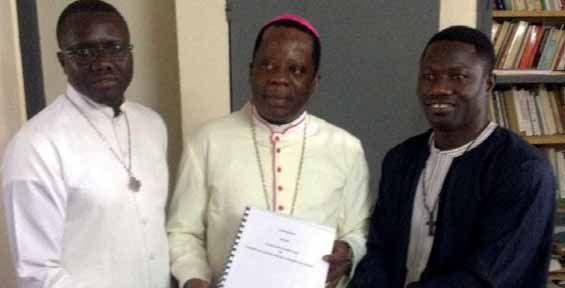 El pasado 13 de junio se firmó un contrato de instalación entre el Sr. Obispo de Agboville en Costa de Marfi l, Mons. Alexis TOUABLY YOULO y el Padre Edouard DIEDHIOU, Asistente Provincial para la formación. El Obispo nos confía de esta manera una parroquia y todo lo referente a la pastoral juvenil. Los otros padres que podemos ver en las fotografías son Roger BABENE (con la sotana), Nestor SARR, Pierre THIARE, maestro de juniores de Abidjan (Costa de Marfi l) y Bertrand DIÉMÉ, Ecónomo Provincial, quienes han acompañado el Padre Edouard para la fi rma de este acuerdo.