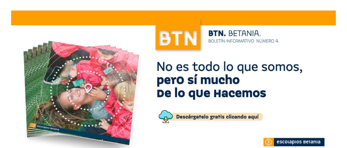 Las Escuelas Pías Provincia Betania presentan la revista BTN, que alcanza su número 4. Esta publicación recoge lo vivido a lo largo del curso alrededor del lema Al encuentro; también incluye una serie de artículos y reflexiones en torno al nuevo proyecto Marco de Pastoral, la Pastoral Vocacional, el Marco Pedagógico de Referencia y toda la actualidad de la misión en Indonesia. Podéis descargarlo en PDF en este o consultarlo en el link