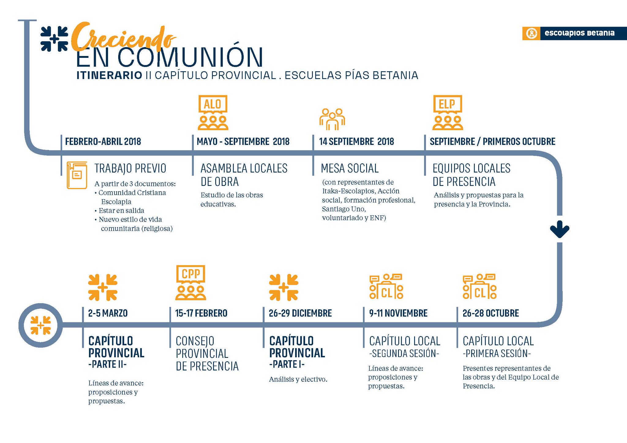 Tenemos en un gráfico el itinerario previsto para el Capítulo en Betania, donde se busca la participación desde el modelo de presencia, como podemos ver: