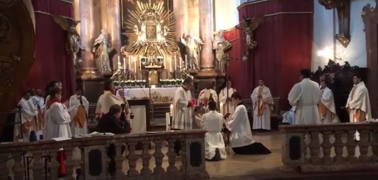 La celebración fue presidida por el Excmo. Sr. Franz Scharl, obispo auxiliar de Viena, quien confirió la orden de diácono a los hermanos escolapios shyne y jinto, por el servicio del pueblo de Dios. Entre los muchos sacerdotes concelebrada la misa, fue Miguel Giraldez, asistente general para Europa, representante personal del superior general. Francisco Anaya, asistente general para América, que dirigió su retiro espiritual también estuvo presente, junto con otros padres escolapios de seis nacionalidades diferentes: Benin, Camerún, China, India, Polonia y España.