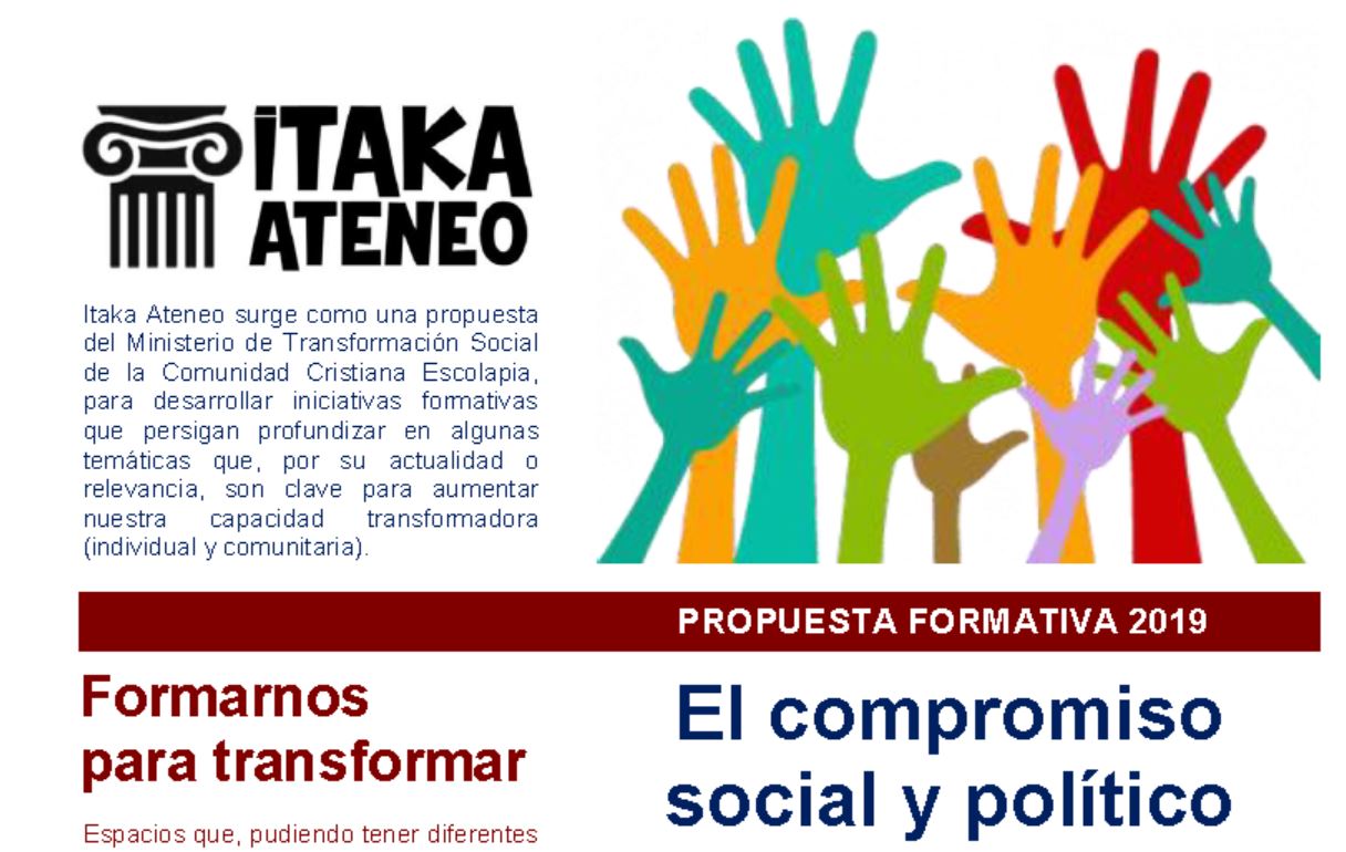 En este curso el tema es «El compromiso social y político» y el plan propuesto lo encontramos aquí: itaka_ateneo_2019