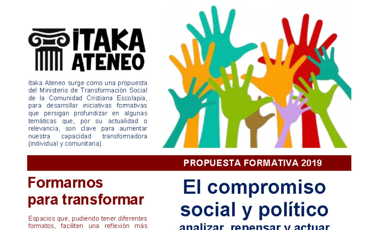 Un año más el Equipo del Ministerio de transformación social de la Comunidad Cristiana Escolapia de Bilbao, Logroño y Vitoria lanzan la iniciativa de «Itaka Ateneo» para formarnos en el compromiso social y político.