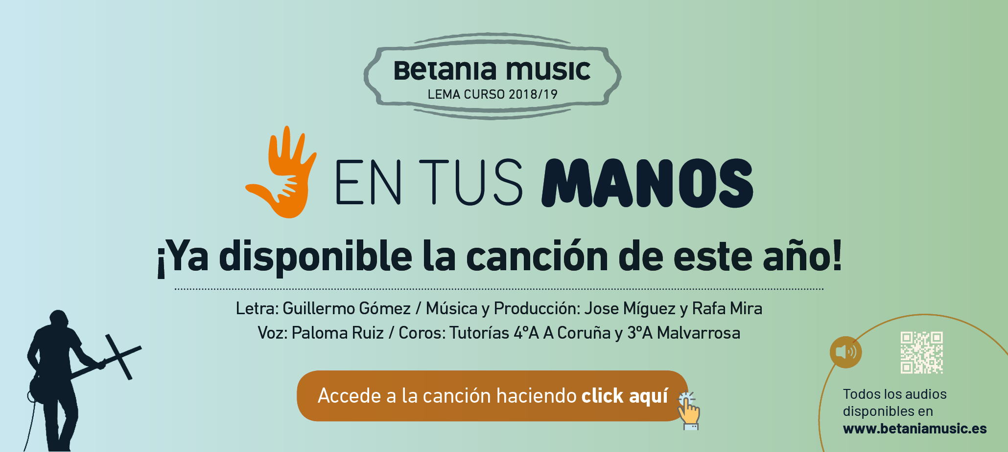 Ya tenemos disponible la canción del lema de este año, «En tus manos», con la letra, música, acordes en https://www.escolapiosbetania.org/noticia//1102?fbclid=IwAR2wu2VpXJzANHTPEegB6VsTkdY09-EggzEXLaAUmVbDTNbK_Ua2igkD32k