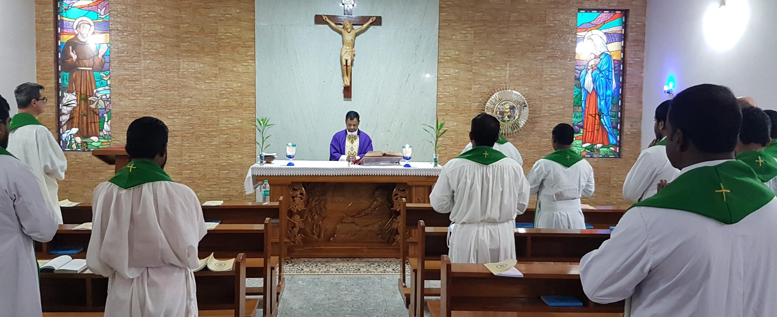 Podemos apreciar en las imágenes la eucaristía de apertura del Capítulo, que fue presidida por el P. Thomas Pallithazhathu. La homilía la realizó el P. Pedro.