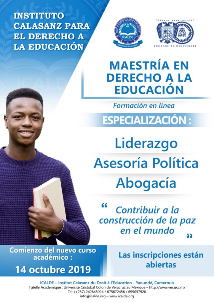Este máster on line de ICALDE (Instituto Calasancio de Derecho a la Educación) es una oferta de la Universidad Cristóbal Colón de Veracruz en México para licenciados en Derecho, Ciencias Sociales y de la Educación.