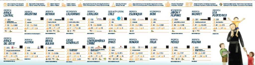 Una manera rápida de conocer las Escuelas Pías es a través de gráficos que permiten una visión global. Aquí tenemos una foto de cada una de las Demarcaciones de la Orden: https://www.facebook.com/pg/Escolapios21/photos/?tab=album&album_id=1705892772823957