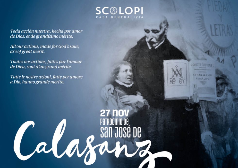 El 27 de noviembre de cada año celebramos el patrocinio de San José de Calasanz sobre la Educación Popular Cristiana. Es una fecha muy esperada por todos nuestros alumnos y educadores, por todo el personal de nuestros colegios, por todos los escolapios y todos los que nos sentimos hijos e hijas de Calasanz.