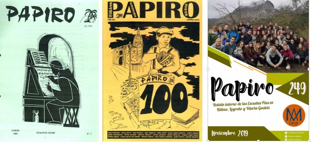 El 1 de febrero de 1985 salía el número 0 de la Revista Papiro, que está recogiendo 6-9 publicaciones cada uno de estos 35 años, la vida de la presencia escolapia de Bilbao, Logroño y Vitoria, con la historia de los colegios, proyectos de Itaka – Escolapios desde su nacimiento, materiales de formación de la Fraternidad y de los ministerios escolapios… y mucha vida.