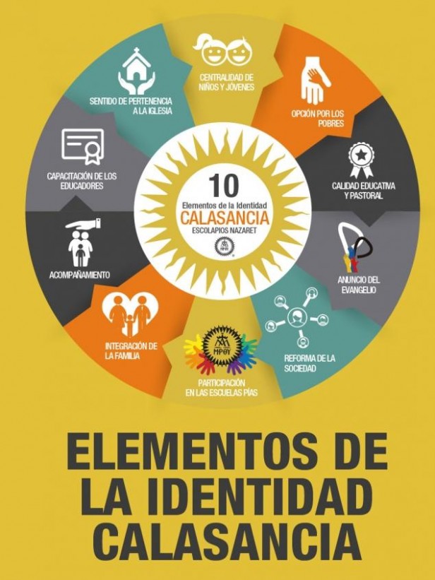 La Congregación General en 2012 publicó un documento que define La identidad calasancia de nuestro ministerio con diez elementos y seis líneas transversales en toda obra escolapia.