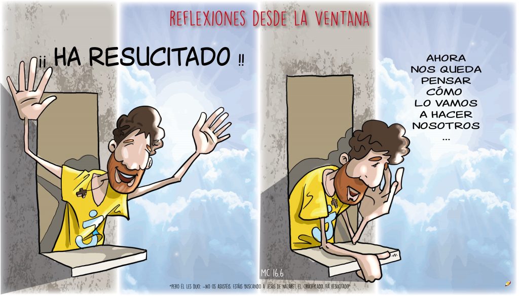 Esto es motivo de fiesta y alegría, aun en medio del aislamiento provocado por esta epidemia generalizada. Y es también renovación de nuestra vida para dejarle que siga vivo a nuestro lado, para hacer que esté vivo en medio del mundo, para que le encontremos personalmente (y también en comunidad) resucitado a nuestro lado.