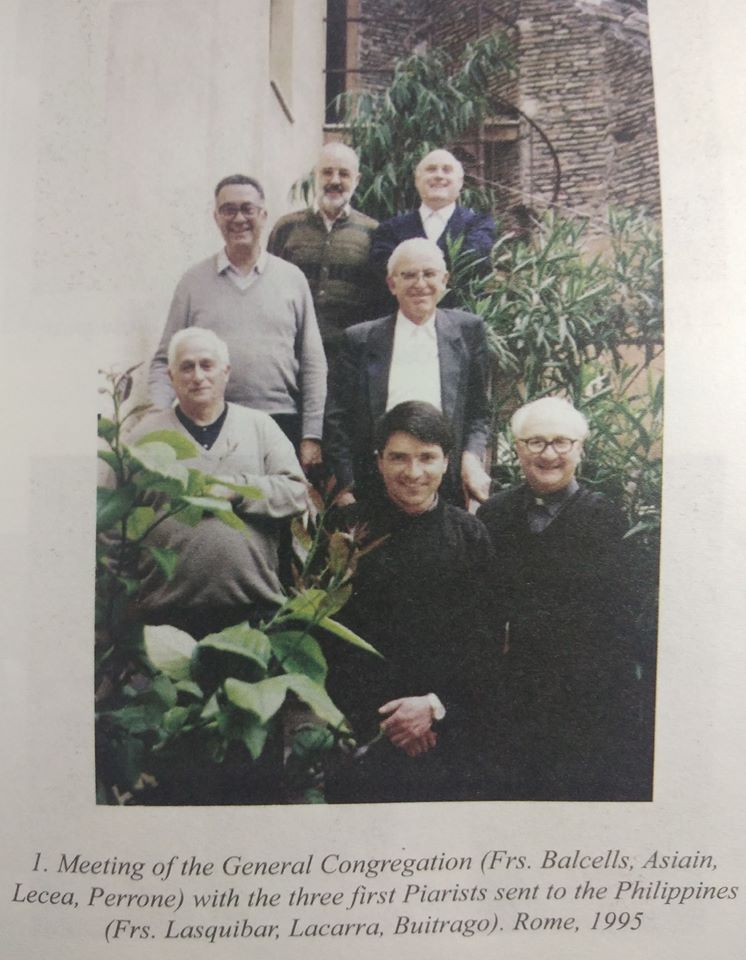Hace 25 años comenzaron esta vida y misión escolapias en Cebú (Filipinas) los tres primeros religiosos escolapios: Imanol Lasquíbar, Jesús Lacarra y Rafael Buitrago a quienes vemos en la imagen con el P. General Josep Maria Balcels y sus Asistentes Generales (Miguel Ángel Asiain, Jesús Lecea y Perrone)