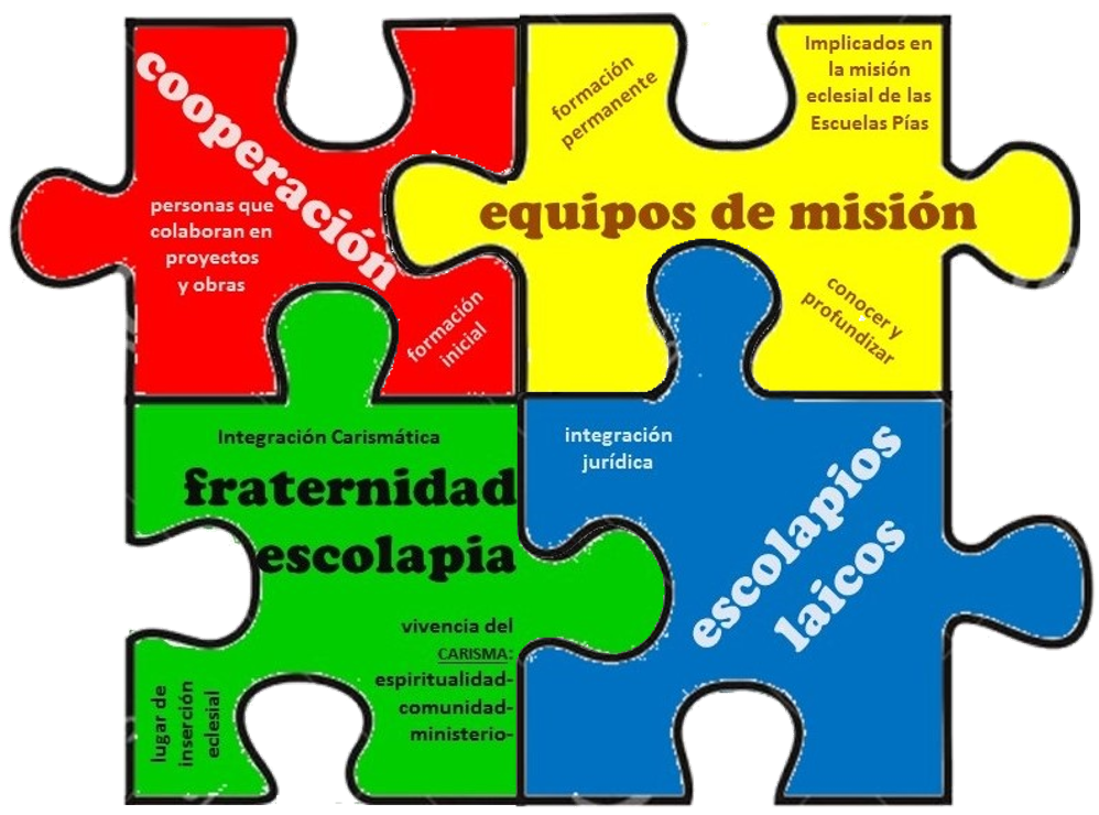Además de las fotos de los responsables en los distintos equipos internacionales de la Orden es preciso recordar, ya que no es posible colocar la imagen de todos, a todos los religiosos escolapios y también a todas las personas que participan en la vida y misión escolapias colaborando de diferentes maneras, siendo parte de los equipos de misión compartida que asumen la encomienda institucional de impulsar la misión en alguna obra o proyecto escolapio, a todos los hermanos y hermanas de la Fraternidad escolapia que es un nuevo sujeto escolapio que encarna el carisma de Calasanz allí donde está presente y a los escolapios laicos que, además de formar parte de la Fraternidad, son también parte de la Orden desde su vocaión laical y escolapia.