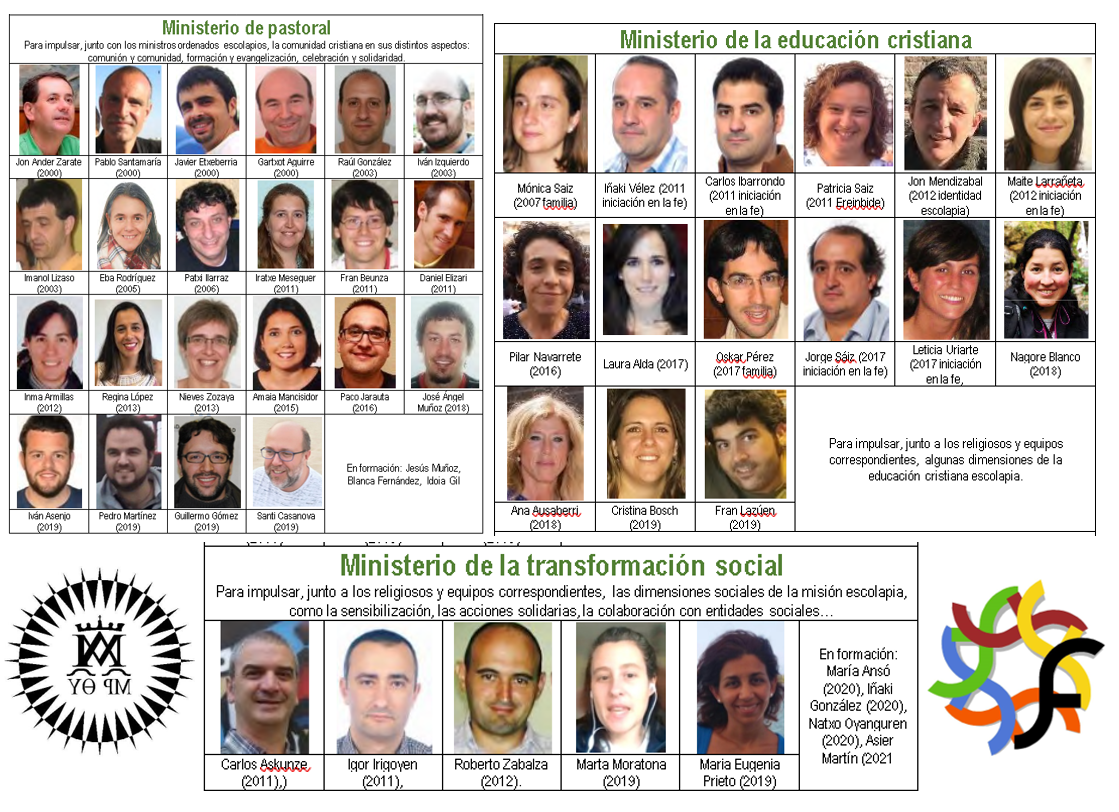 Se refieren a los tres grandes ámbitos del ministerio escolapio: la acción pastoral, la educativa y la de transformación social, siempre en estrecha labor con los religiosos escolapios que asumen estos ministerios.
