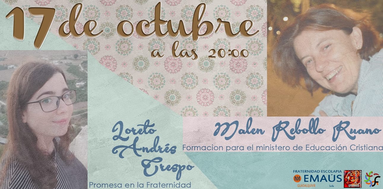 En el marco de la Eucaristía de la Comunidad Cristiana de Montequinto(Sevilla-España) Loreto hará su promesa de entrada en la Fraternidad Guadalquivir de Emaús y Malen recibirá la encomienda para iniciar su formación para el ministerio de la educación cristiana.