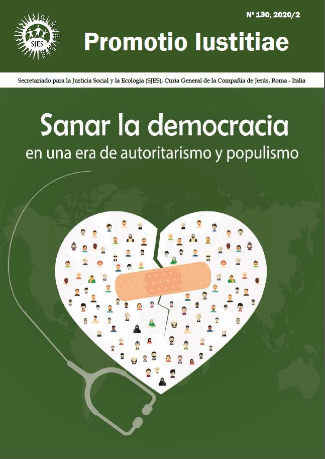 Promotio Iustitiae no. 130 reúne 20 artículos bien reflexionados escritos por expertos que han trabajado sobre los retos de la democracia en las seis conferencias jesuitas. Los autores destacan con situaciones concretas y ejemplos lo que ha llevado a la recesión de la democracia y las estructuras democráticas en los últimos años y por qué la democracia perdió su enfoque y el impulso hacia adelante en muchos países. Los autores no sólo destacan los obstáculos y los retos a los que se enfrentan en sus respectivos países, sino que también sugieren formas de remediar la crisis.