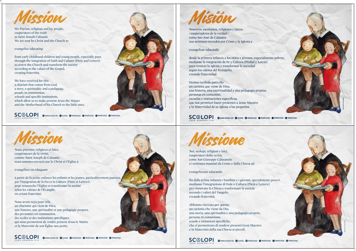 MISIÓN DE LOS ESCOLAPIOS 31/03/2021 En el Capítulo General de 2011 se escribió un bonito texto que define la misión de los escolapios, religiosos y laicos, que conviene tener muy presente y en todas las lenguas.