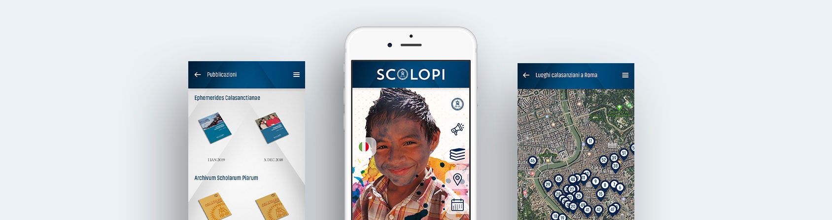 En Scolopi encontrarás diversas secciones relacionadas con Calasanz, la familia calasancia, así como las Escuelas Pías en el mundo y su historia. A través del buscador se puede localizar cualquier presencia escolapia en el mundo, así como a los lugares calasancios para todo aquel que visite Roma, cuna de las Escuelas Pías. Así mismo, Scolopipermite acceder a las principales publicaciones (Analectay Ephemerides Calasanctianae), así como a las Cartas del Padre General y al Calendarium Ordinis, que recoge, entre otros, los datos y aniversarios de religiosos y obras escolapias.
