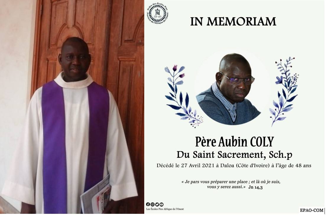 La Province des Écoles Pies de , l’Afrique de l’Ouest à la profonde douleur d’annoncer à toute la famille #Piariste, aux amis et connaissances, le décès du Père AUBIN COLY, survenu ce mardi 27 Avril 2021 en Côte d’Ivoire. Puisse son âme reposer en paix.