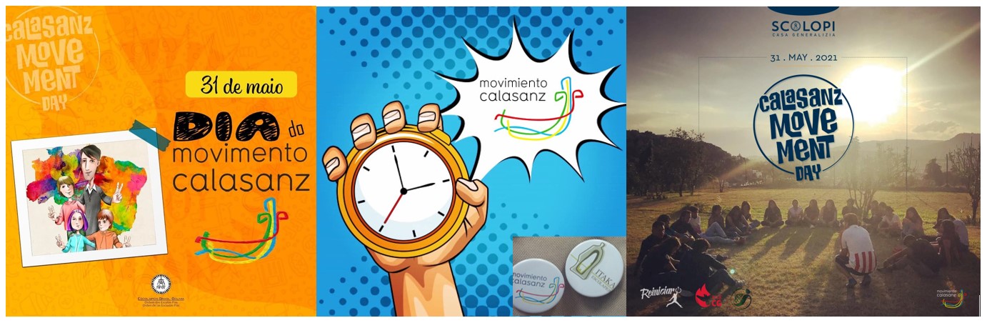 A partir de este año 2021 hemos cambiado el Día del Movimiento Calasanz del 15 de febrero al 31 de mayo para ajustarnos a un calendario más internacional en toda la geografía escolapia: es el día de oración por las vocaciones escolapias (objetivo de toda educación), es día del joven religioso escolapio Glicerio Landriani que es patrono del Movimiento Calasanz.