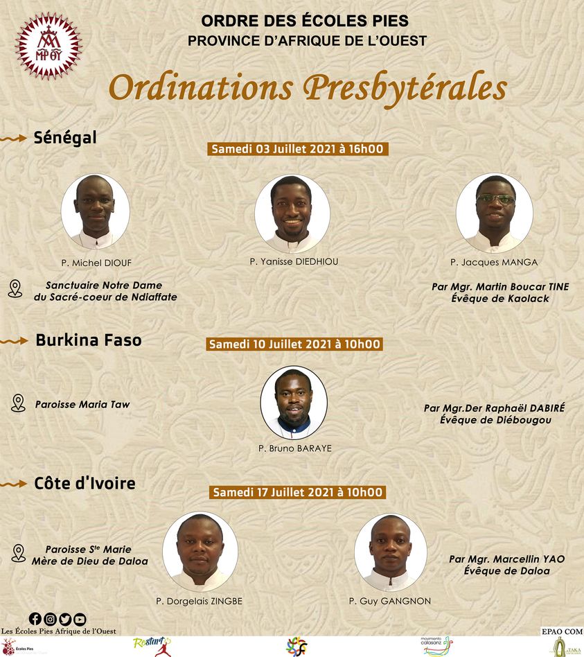 EN JULIO, SEIS NUEVOS SACERDOTES ESCOLAPIOS EN ÁFRICA DEL OESTE 18/06/2021 Se acerca un mes con buenas noticias desde África del Oeste: la ordenación sacerdotal de seis religiosos escolapios.