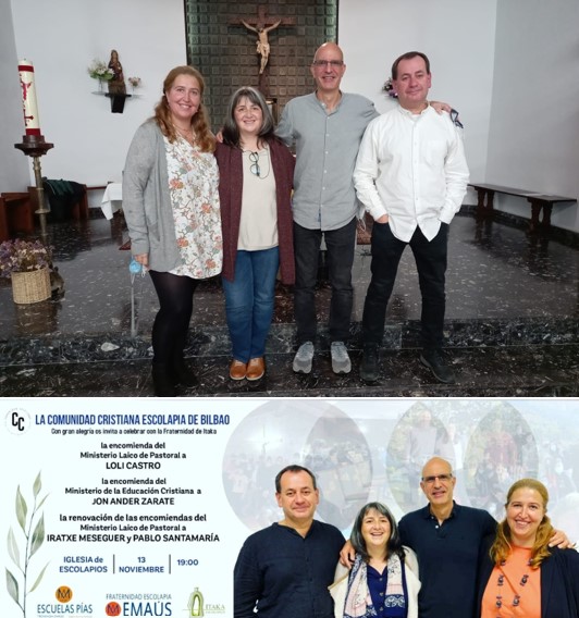 Así (de izquierda a derecha en la foto): Iratxe renovó por otros diez años su ministerio de pastoral, Loli inició esta misma encomienda, Pablo renovó nuevamente este ministerio y Jon Ander, después de veinte años de ministerio pastoral, comienza a asumir el ministerio de la educación cristiana.