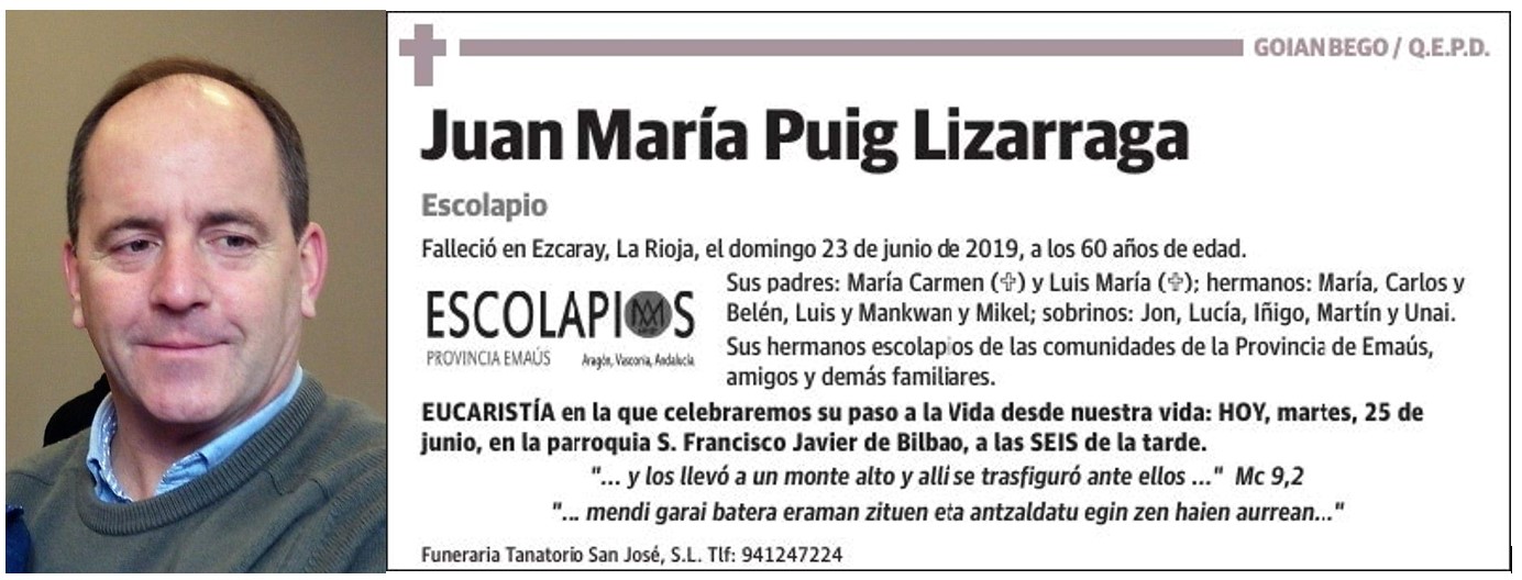 DESPEDIMOS AL P. JUAN MARI PUIG… HACE TRES AÑOS 25/06/2022 Se fue de nuestro lado para seguir acompañándonos de otra manera: sigue siempre a nuestro lado, Juanma.