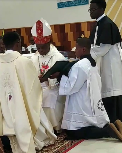 Ordenación sacerdotal de Jean Sylvain OTTOU ETOUNDI, Brian Yuh WOMEI, André Serge FOUDA y Brandon Sekuna TCHATIEN NUVAGA en nuestra parroquia del Bautismo de Jesús y San Ambrosio de Yaoundé (Camerún) y presidida por S.E.R. Mons. George Nkuo, obispo de Kumbo.