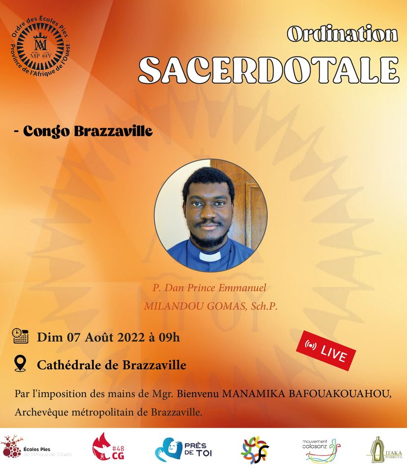 Ordenación sacerdotal de Dan Prince Emmanuel MILANDOU GOMAS. La ordenación tendrá lugar en la catedral de Brazzaville (Congo) y será presidida por S.E.R. Mons. Bienvenu Manamika BAFOUAKOUAHOU, arzobispo de Brazzaville.