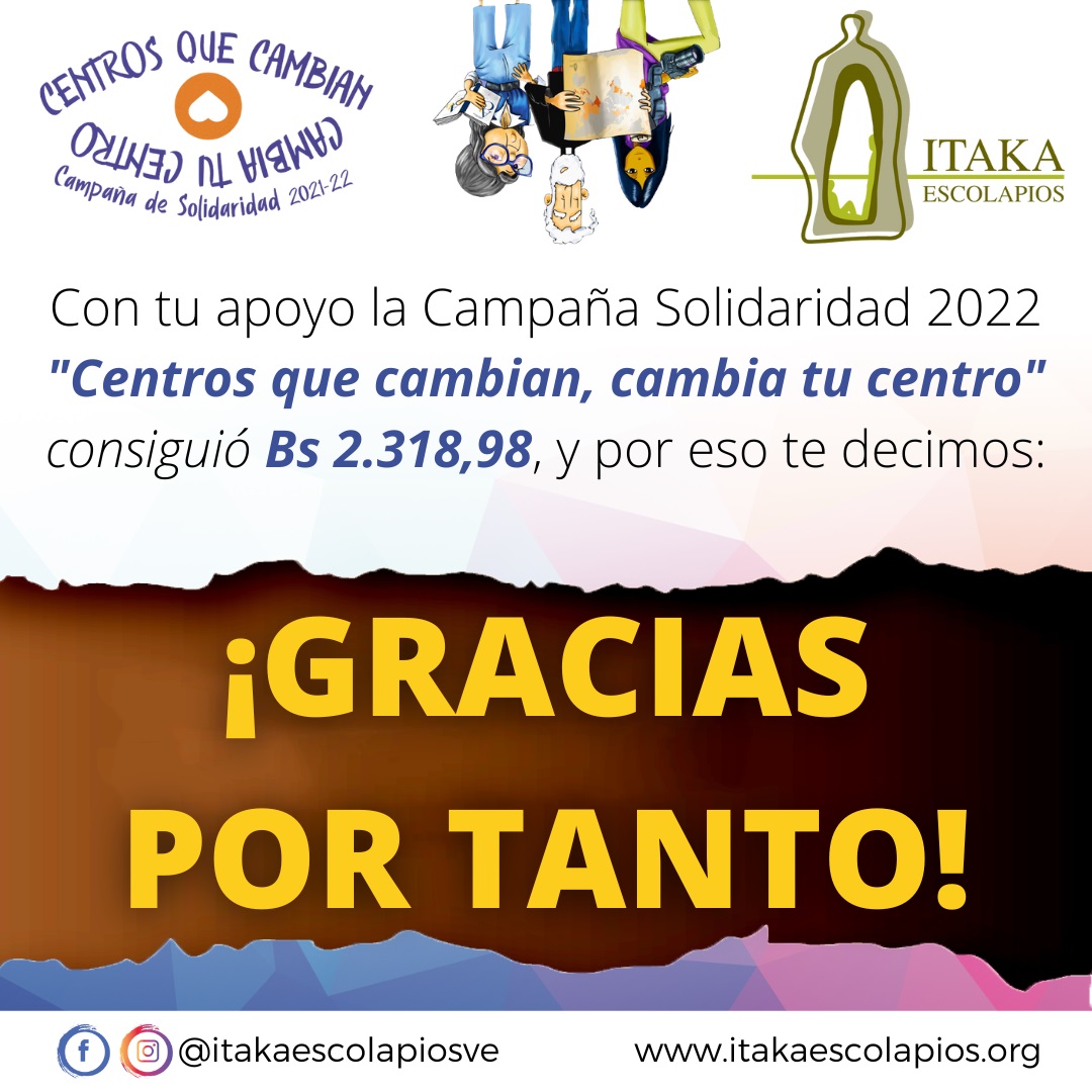 Itaka-Escolapios de Venezuela, se siente muy orgullosa de los venezolanos, tienen un corazón grande, llevan alegría donde hay tristeza, motivan donde no ven esperanzas, a pesar de las dificultades y carencias apuestan por el cambio y comparten de lo poco que tienen con mucho amor, ¡Gracias por todo esto y más!