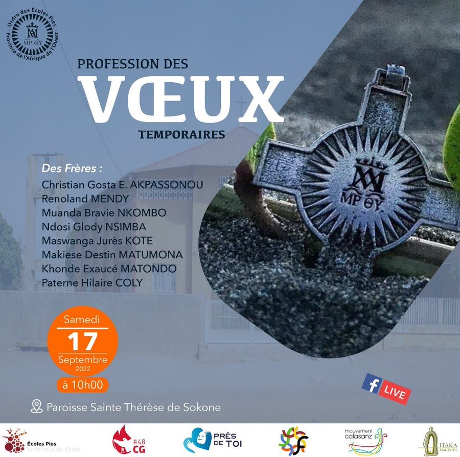 El 17 de septiembre, en la parroquia de Sokone (Senegal) harán su primera profesión como religiosos escolapios estos ochos jóvenes, pasando a formarparte de la Provincia de África del Oeste (Senegal, Costa de Marfil y Burkina Faso).
