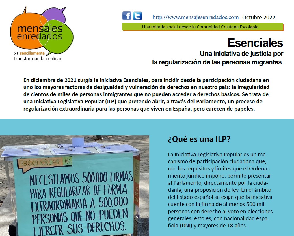 Tenemos disponible un nuevo mensaje enredado que nos envían desde el Ministerio de Transformación Social, dedicado esta vez a la ILP (Iniciativa Legislativa Popular) esenciales, por la regularización de personas migrantes.