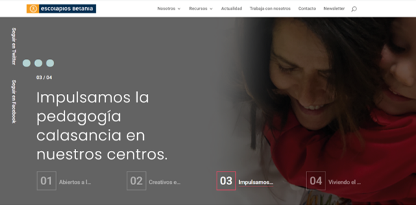 Además de espacio de buenas prácticas, nuestra página web quiere ser un lugar de referencia para acompañar y cuidar algunos procesos de mejora pedagógica en nuestros centros educativos. Creemos en nuestra misión como educadores comprometidos e innovadores que acompañan al alumno/a en su crecimiento integral como persona, al docente en su labor diaria y a toda la comunidad educativa en su caminar como grupo humano y cristiano en crecimiento constante. La encontramos en https://www.pedagogiabetania.org/