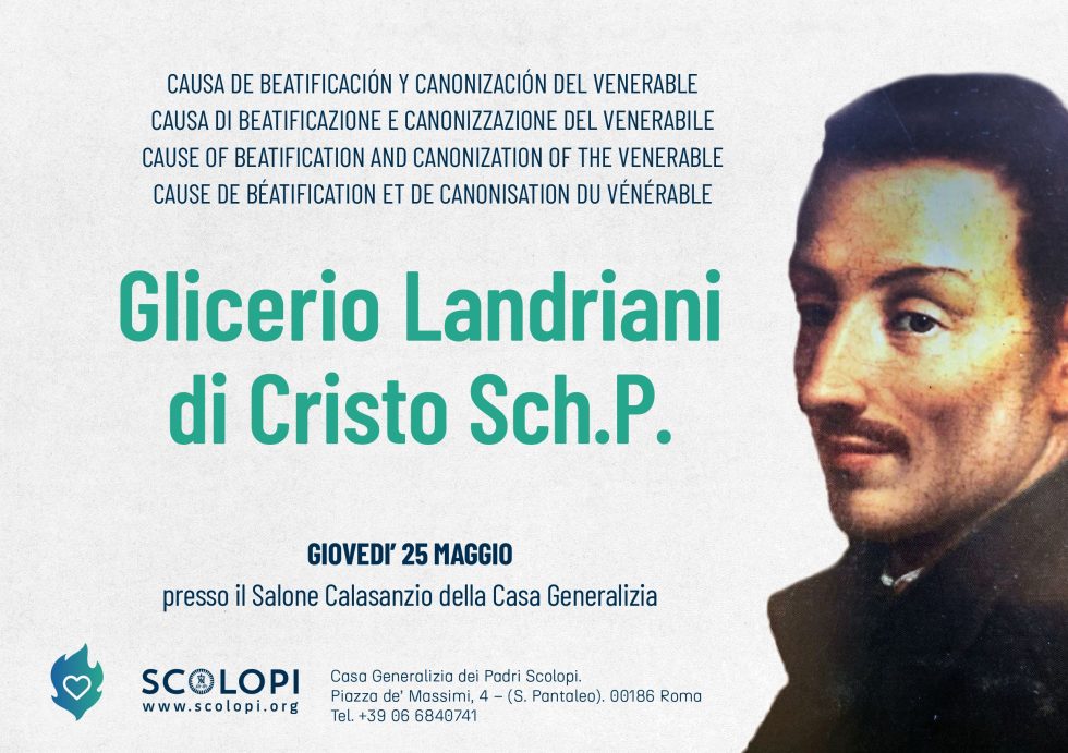 El próximo 25 de mayo tendrá lugar en Roma un acto institucional de la Causa de Beatificación y Canonización del Venerable Glicerio Landriani de Cristo Sch.P., joven escolapio fallecido con fama de santidad y cuyo proceso inició el mismo santo fundador.