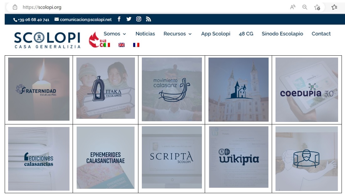 La página de la Orden presenta una serie de enlaces para estar conectados e informados de la vida escolapia en sus diferentes equipos. Entre ellos destacamos diez: cinco para la vida y misión (Fraternidad, Itaka – Escolapios, Movimiento Calasanz, Parroquias escolapias y Coedupia), y otros cinco para la formación (Edicaciones Calasancias, Ephemerides, Scripta, Wikipia y la visita virtual a San Pantaleo).